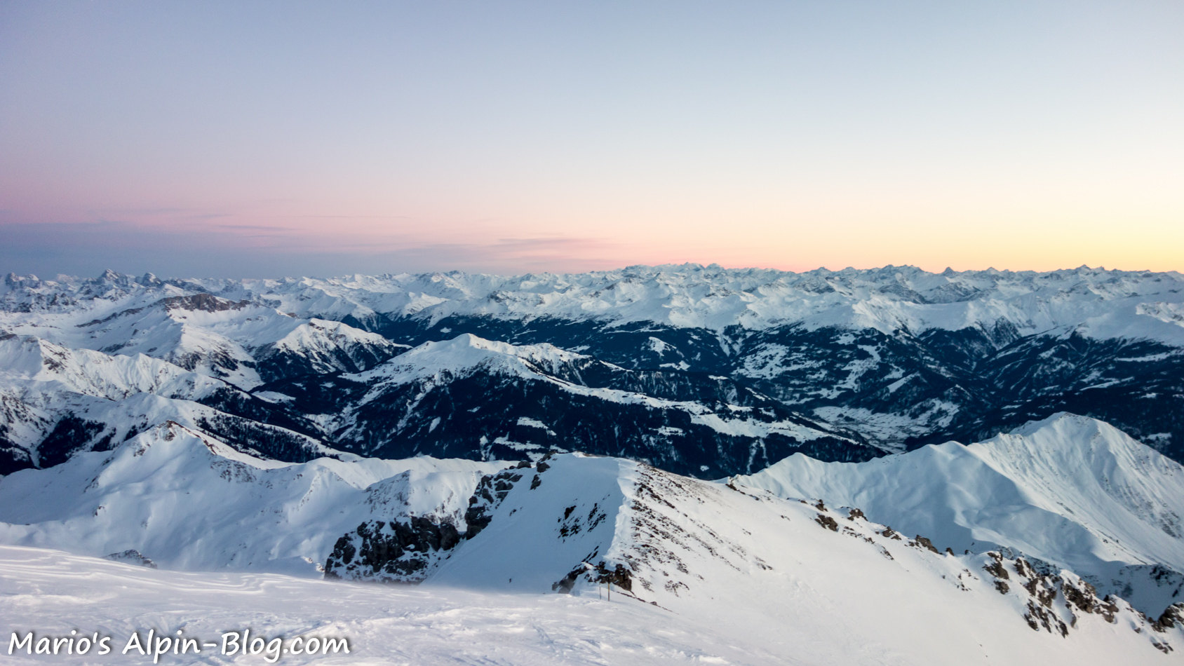 Schöne Tour, die weniger zaach ist wie gedacht. Die Bedingungen müssen halt passen (sichere Schneeverhältnisse) – und das tun sie momentan. Skifahrerisch ist es allerdings kein Traum, da relativ durchgehend sehr hart Schnee und noch kein Firn. Unbedingt Harscheisen mitnehmen!! Böser Tritt kann auch nach Steigeisen verlangen.