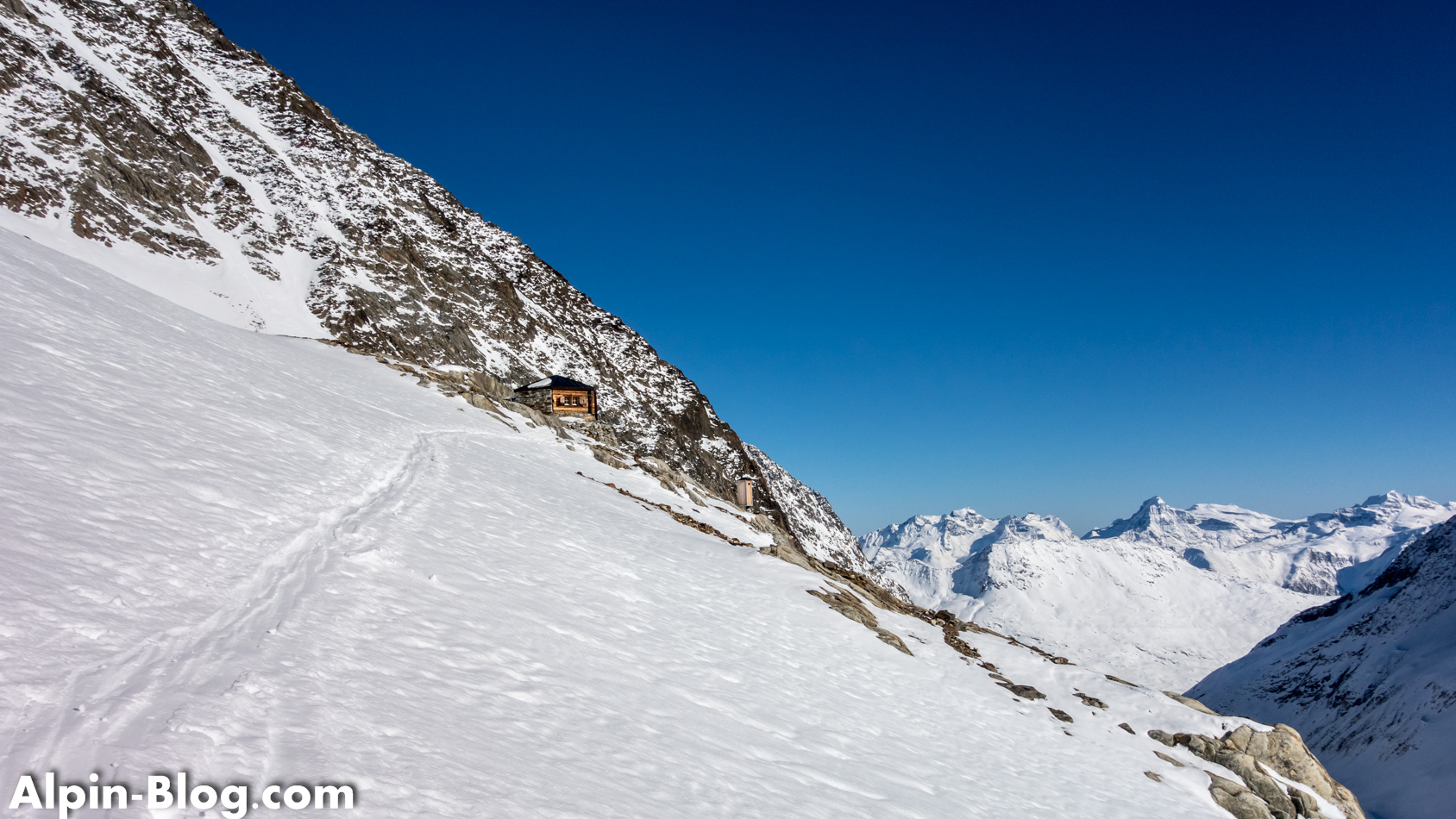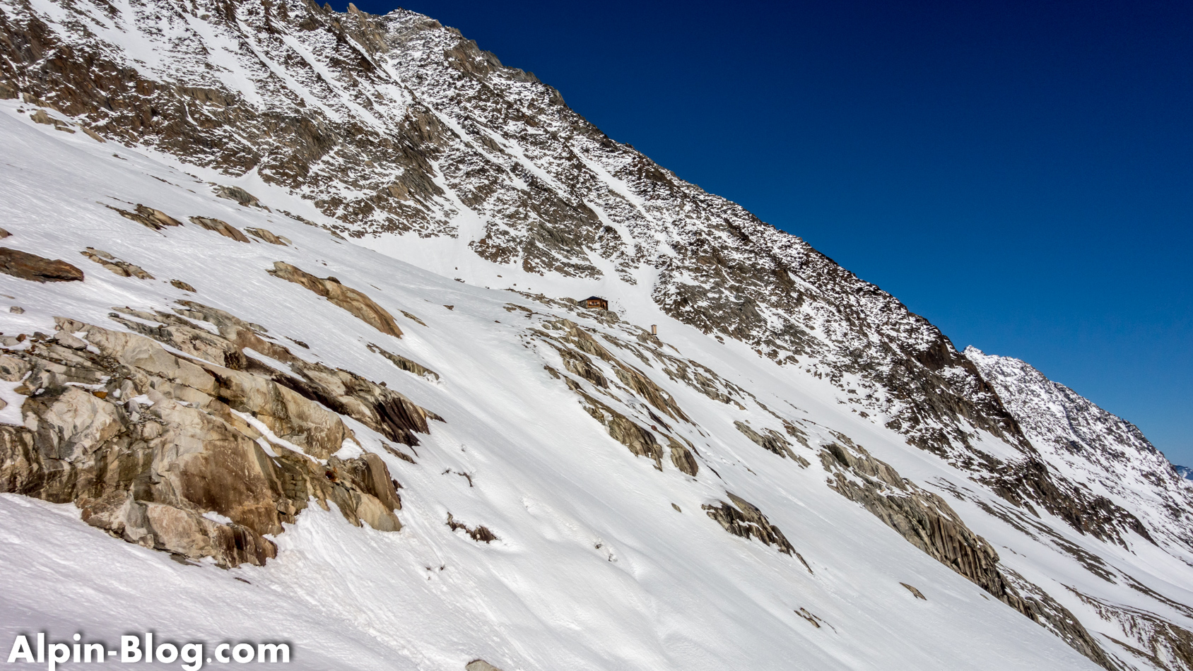 Update: Durch eine Lawine wurde dieses Biwak mittlerweile leider zerstört und kann nicht mehr als Stützpunkt benutzt werden. Ob es wieder aufgebaut wird ist nach wie vor (Stand Juni 2022) ungewiss.