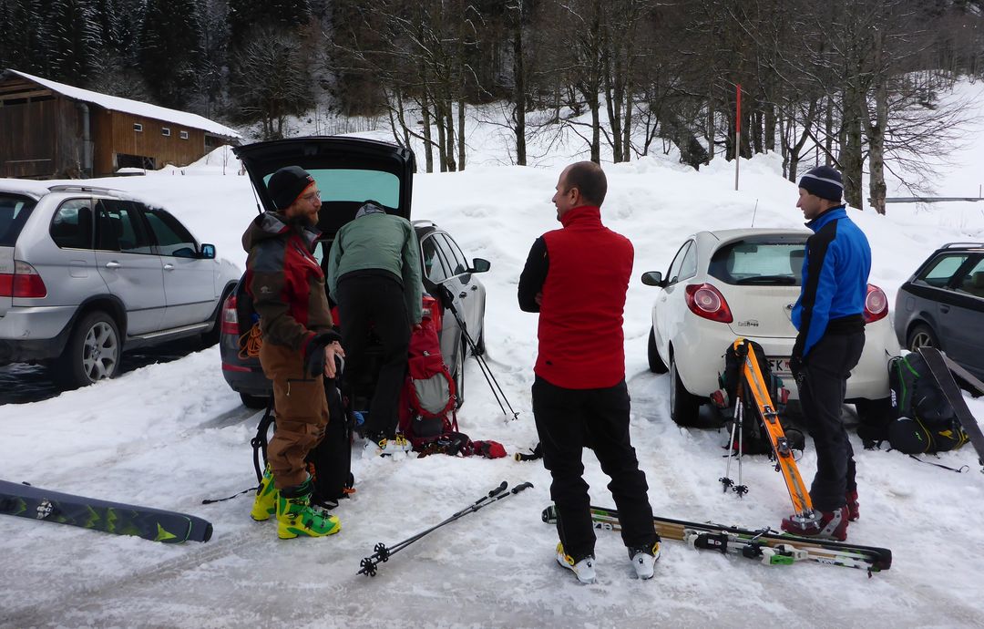 Freitag bis Sonntag ging’s mit dem AV Feldkirch in die schöne Silvretta, um einige Gipfel und Winterräume zu besuchen bevor der große Run nächste Woche kommt (dann öffnen einige Hütten in der Gegend). Freitagmittag treffen in FK, wo uns der erste gemeinsame Weg zum Supermarkt führt, wo wir uns für die nächsten Tage eindecken. Die 4 Jungs staunen nicht schlecht über die Beladung unseres Einkaufswagens: Brot und Wasser waren gestern, ab heute speisen wir wie die Könige :-) Sonntagabend wird sich herausstellen, dass mein Rucksack inkl. Proviant, Seil, Hartware, Schlafsack, etc. über 20 Kilo gewogen hat…