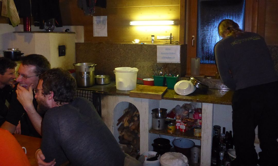 Neben der modern umgebauten Hütte befindet sich ein separates Steinhäuschen, das als Winterraum fungiert. Im EG ein großer Raum mit 2 Tischen, Ofen, Platz zum Holzhacken etc., im Halbstock eine Indoor-Toilette, im OG ein 10er sowie ein 2er Lager. Von der Ausstattung her top, jedoch bekommen wir den Raum nicht und nicht warm obwohl wir wie Blöden heizen :-/.