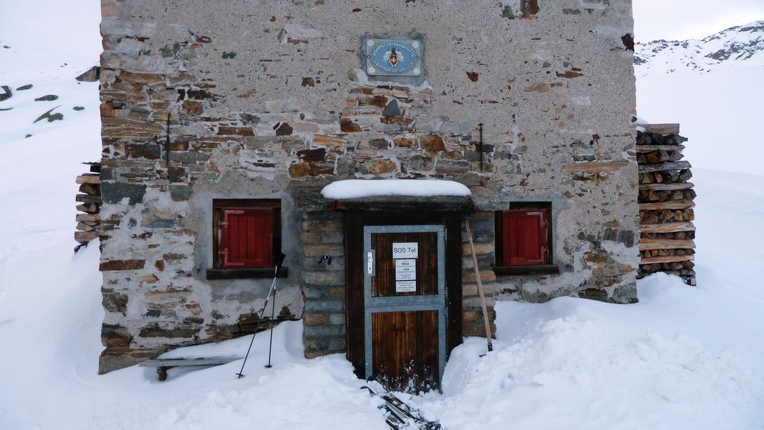 Next stop Montafon, Talstation der Vermuntbahn. Als einzige Fahrgäste legen wir die ersten Höhenmeter des Tages mit der Seilbahn zurück – von der Bergstation geht’s mit dem Bus durch mehrere Tunnels und den oberen Teil der Hochalpenstraße bis zur Bielerhöhe. Den Stausee queren wir direkt über die vorhandene Loipe, auf der sich wenige Sportler und Spazierer tummeln. Am Ende des Sees folgen wir nicht dem linkerhand liegenden Sommerweg sondern halten uns am Winterweg, der rechts vom Bach verläuft. Der Weg zur Wiesbadnerhütte verläuft unspektakulär – trotzdem sind wir froh, am späten Nachmittag mit den schweren Rucksäcken, den beheizten Winterraum zu erreichen. Außer uns sind 5 weitere Tourengeher untwegs und wir verbringen einen witzreichen Abend, während wir uns Suppe, Hühnergeschnetzeltes, Gummibärlis, Schoko und Rotwein schmecken lassen (und die anderen Gäste ebenfalls versorgen;-).