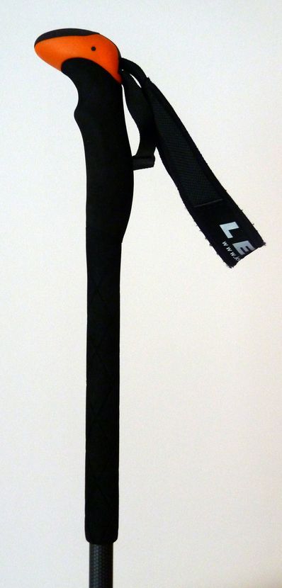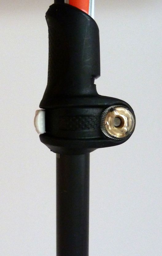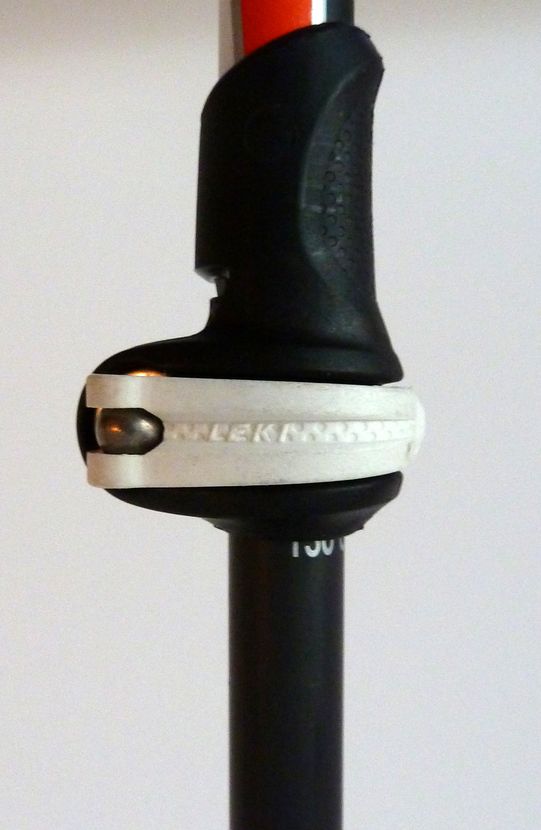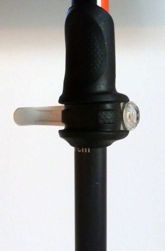 Der Stock besteht aus 2 Segmenten wobei sich die Länge stufenlos variabel verändern lässt (110-145cm). Bei 192cm Körpergröße verwende ich normalerweise 130cm für den Aufstieg und 125 für die Abfahrt – das ist jedoch sehr subjektiv. Jedenfalls bietet der Stock genügend Reserven in der Längenverstellbarkeit – auch für groß gewachsene Speed-Ski-Bergsteiger. Als Verschluss setzt Leki auf das hauseigene Speed-Lock-System. Der Arretierhebel lässt sich auch mit dicken Handschuhen leicht bedienen. Sollte der Verschluss zu locker sein so befindet sich auf der anderen Seite eine Verstellschraube, die sich ebenfalls ohne Werkzeug bedienen lässt.